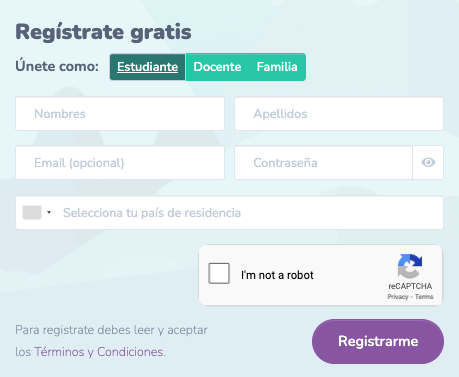 Opción 1: Registro por el estudiante.