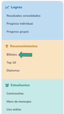 Dentro del curso, selecciona la opción Billetes en el menú lateral.