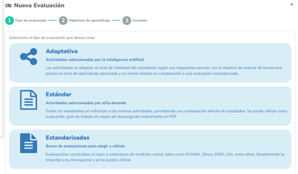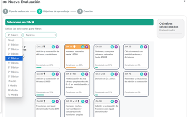 Crea evaluaciones personalizadas con etapas de distintos niveles académicos, ajustando cantidad de actividades y programando su aplicación con flexibilidad.