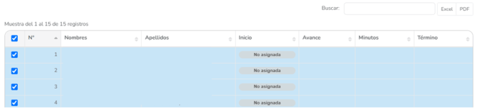 En la parte inferior, marca a los estudiantes a quienes deseas asignar la evaluación, usando la casilla a la izquierda de su nombre.