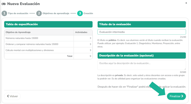 Haz clic en el botón verde para iniciar inmediatamente o programar la evaluación, según la opción que elegiste.