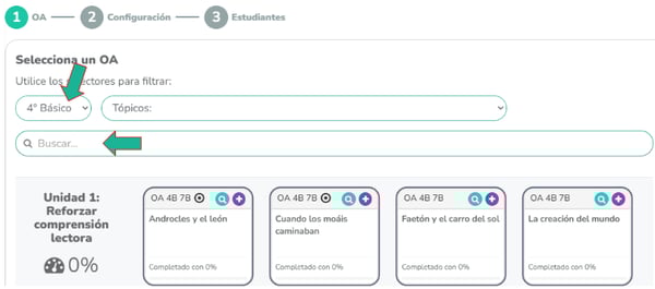 En la plataforma, elige el área (Comprensión lectora) y el grupo correspondiente.