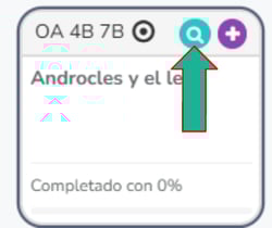 Con el ícono de lupa en el bloque puedes ver de qué trata en detalle. Ese bloque corresponde a una etapa, compuesta por un texto que está vinculado a uno o más objetivos de aprendizaje. Solo puedes seleccionar una etapa por tarea.