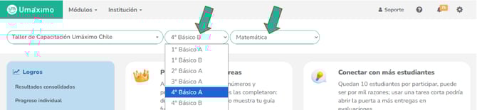 En la plataforma, elige el área (Matemática) y el grupo correspondiente.