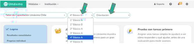En la plataforma, elige el área (Comprensión lectora) y el grupo correspondiente.