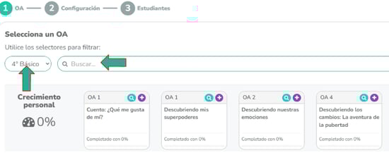 Con el ícono de lupa en el bloque puedes ver de qué trata en detalle. Ese bloque corresponde a una etapa, compuesta por un video que está asociado a actividades gamificadas que abordan la temática, permitiendo al estudiante comprenderla, aplicarla en situaciones cotidianas y reflexionar en torno a ella. Solo puedes seleccionar una etapa por tarea.