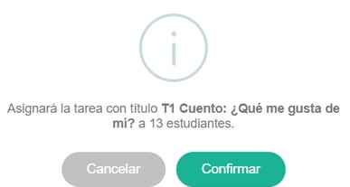 Opcionalmente, puedes escribir un mensaje al grupo o elegir "Más tarde" si prefieres no enviarlo en ese momento. Este mensaje lo verán cuando accedan a la tarea, antes de iniciarla.