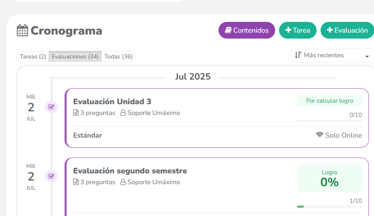✅ ¡Listo! Verás la evaluación replicada en el cronograma de cada grupo seleccionado.