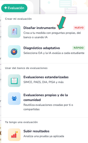 Dentro del menú desplegable, selecciona la opción "Diseño de instrumento".
