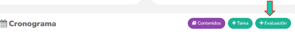 Haz clic en el botón "+Evaluación" (color verde), ubicado en la parte derecha del cronograma.