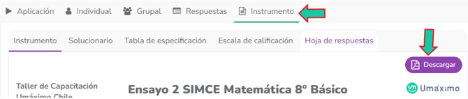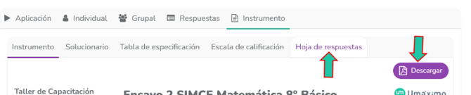Dirígete a la pestaña "Hoja de respuestas" y haz clic en el botón "Descargar".