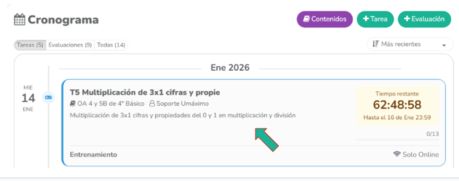 Dirígete al cronograma del grupo y área donde aplicaste la tarea. Luego selecciona la tarea que deseas editar para abrir su vista detallada.