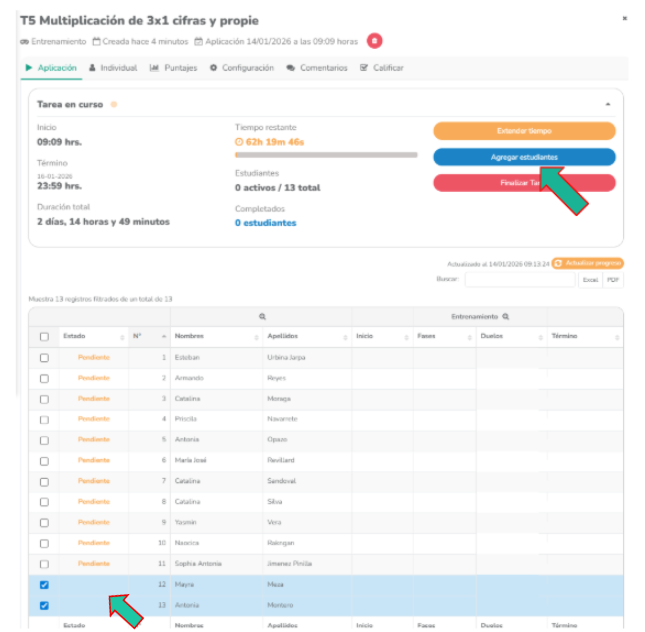 ✅¡Listo! Ya has agregado a nuevos estudiantes a la tarea en curso, sin necesidad de crear una nueva desde cero.