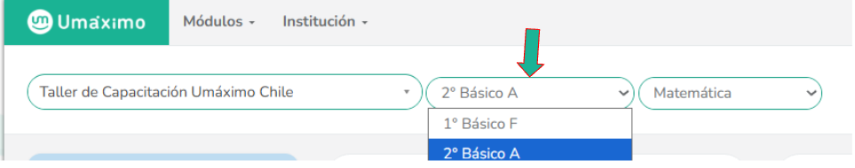 En la plataforma, utiliza los selectores superiores para escoger el "Grupo" y “Área” que deseas.