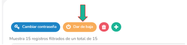 - Haz clic en el botón "Dar de baja" (color naranja)