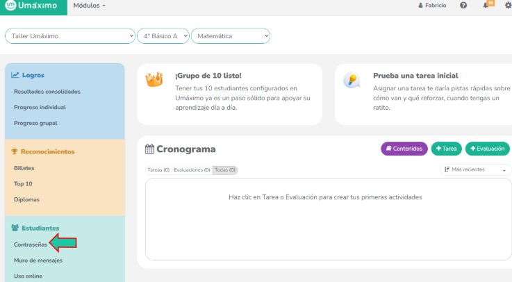 - Dirígete a la sección Estudiantes y haz clic en “Contraseña”