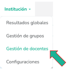 Si tienes perfil Directivo, verás la opción “Institución” en la parte superior izquierda de la pantalla. Haz clic allí y luego selecciona “Gestión de docentes”.
