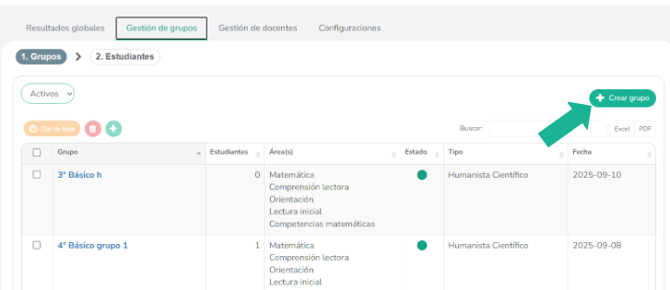 Accede a “gestión de grupos” y pincha “crear grupos”.