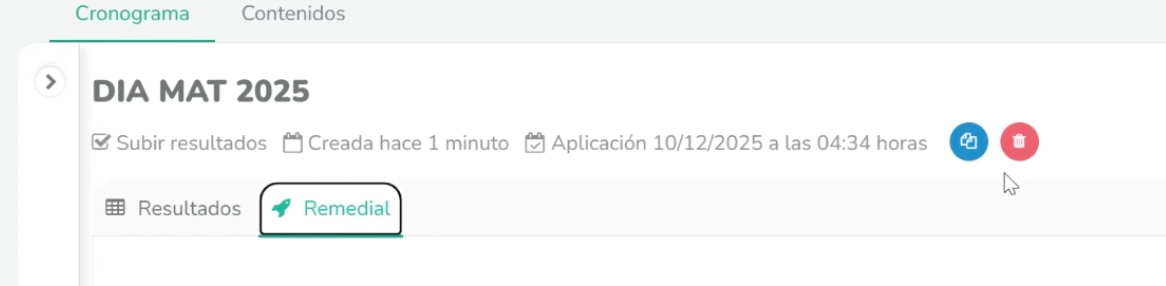 Accede a la pestaña “Remedial”. El sistema comenzará a analizar la información para proponer el reforzamiento más adecuado. Espera unos segundos.