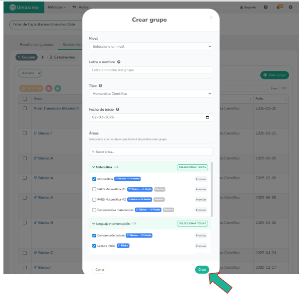 ¿Cómo crear un grupo para un taller o electivo?