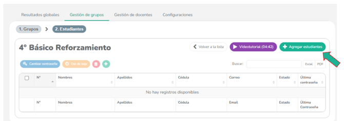 Dentro de la vista del grupo, haz clic en el botón "Agregar estudiantes".