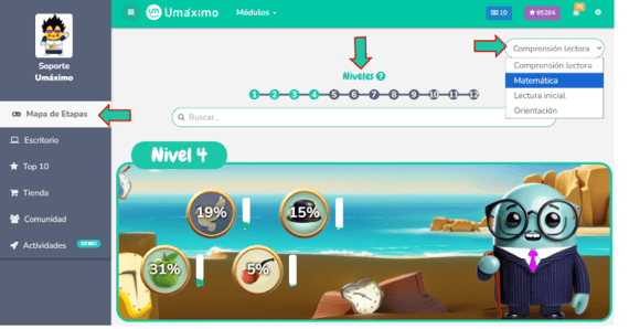 El avance en el mapa de etapas es un proceso de aprendizaje autónomo, por lo que tus estudiantes pueden progresar según su propio interés sin necesidad de una asignación previa.