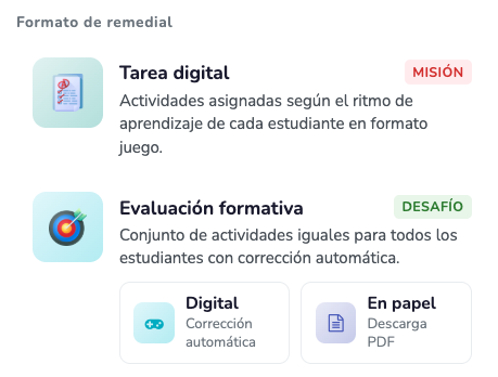 ) a los estudiantes que necesitan ese refuerzo específico, pero tú puedes modificar esta selección manualmente antes de confirmar.